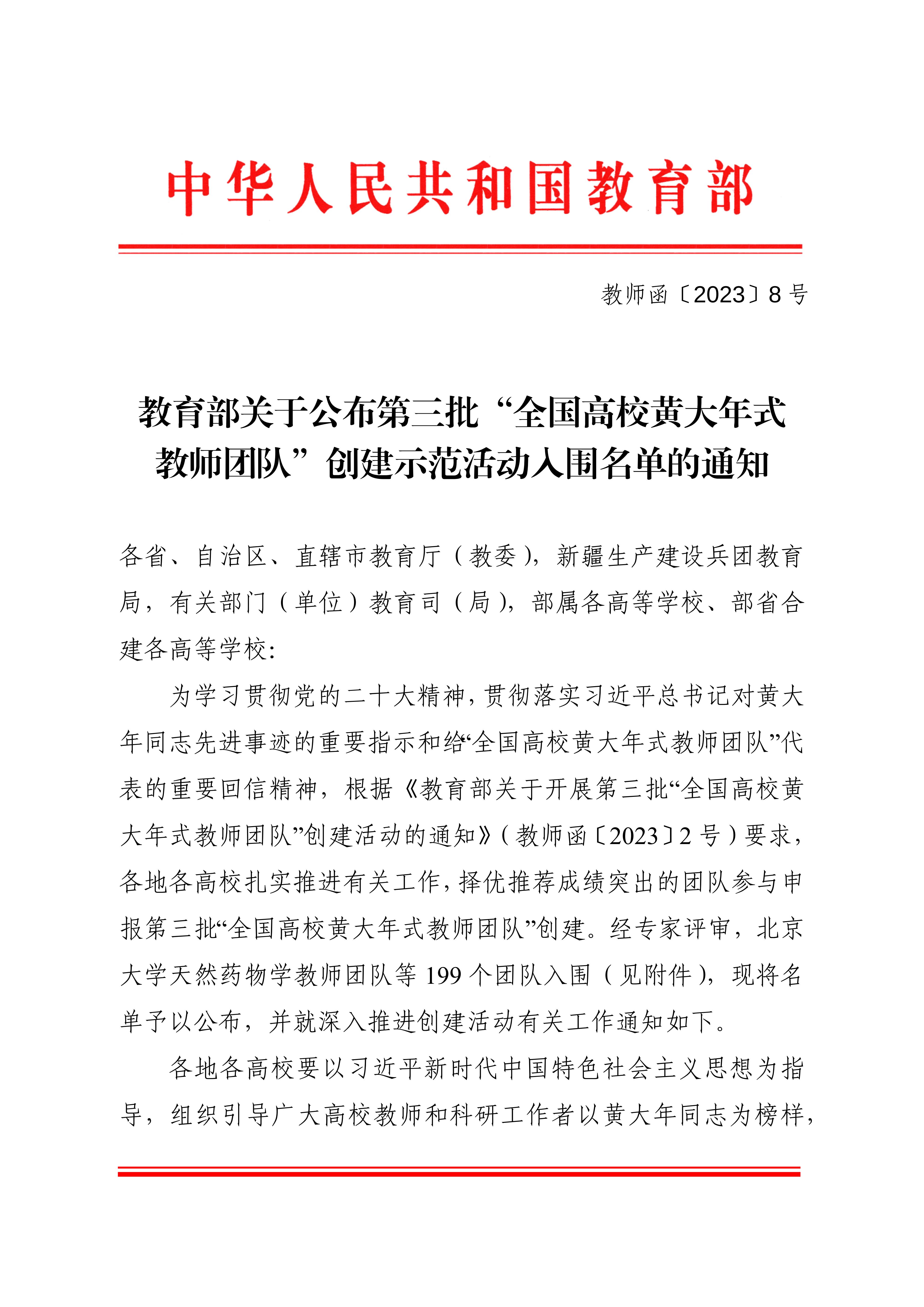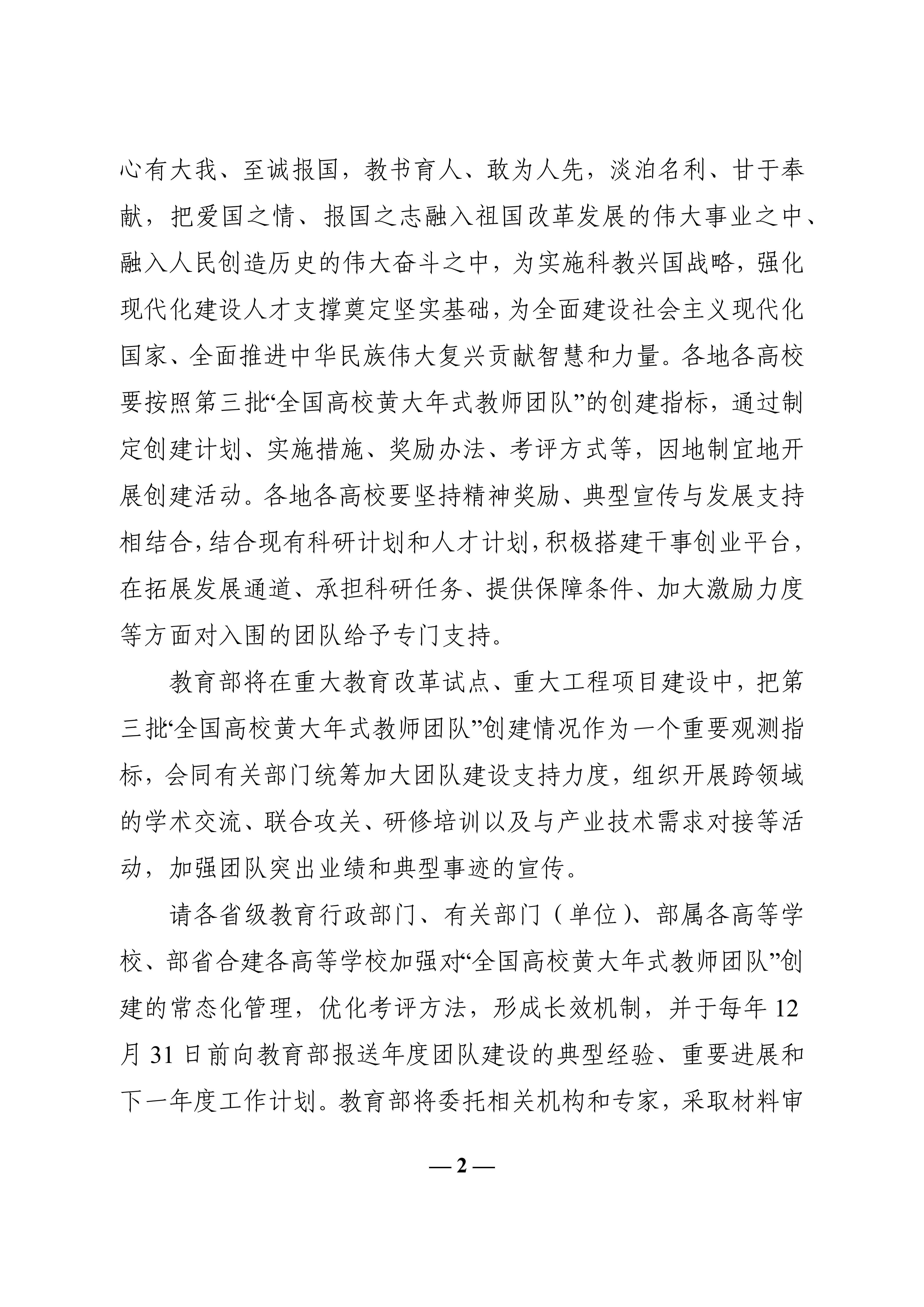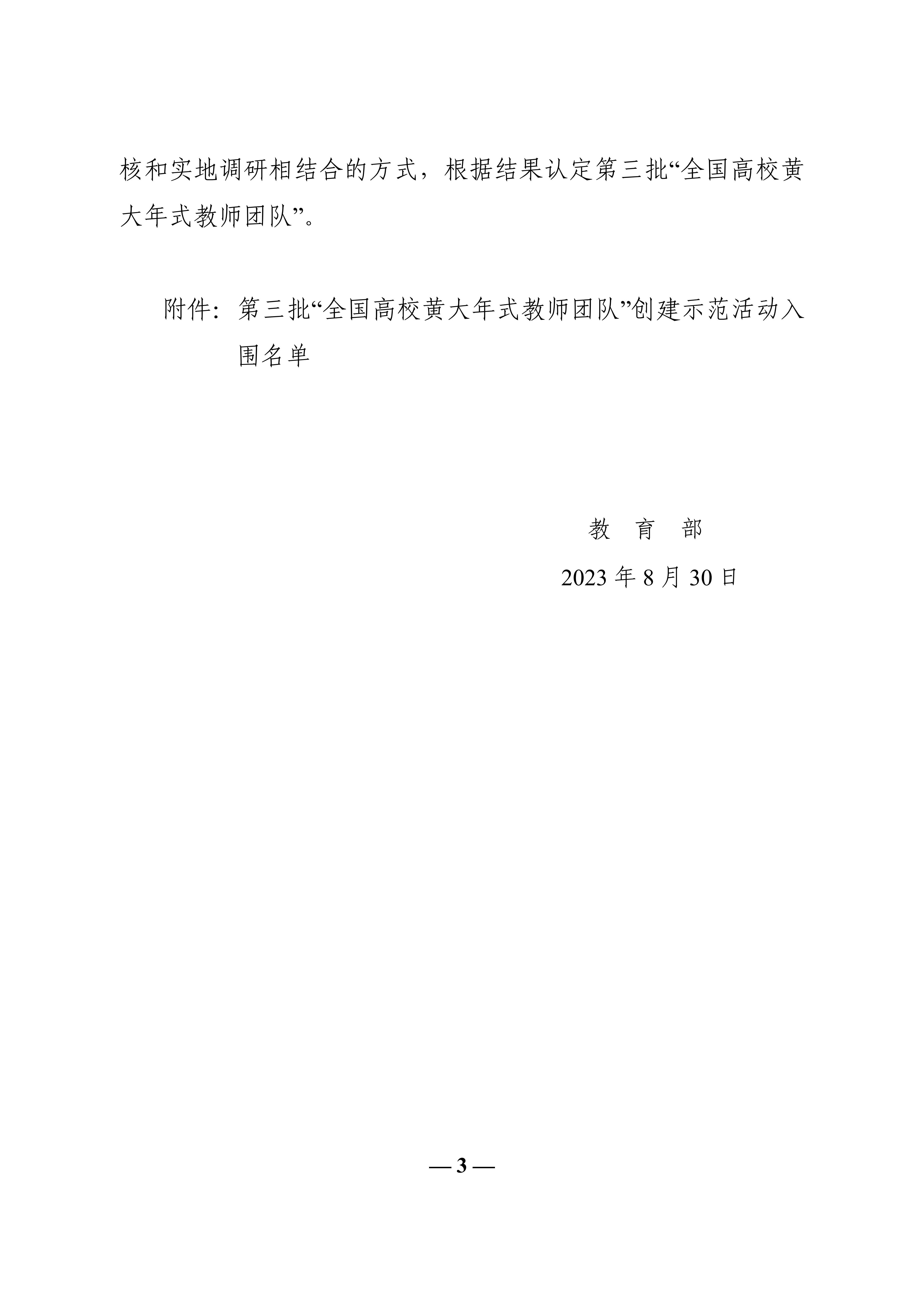 教育部关于公布第三批“全国高校黄大年式教师团队”创建示范活动入围名单的通知