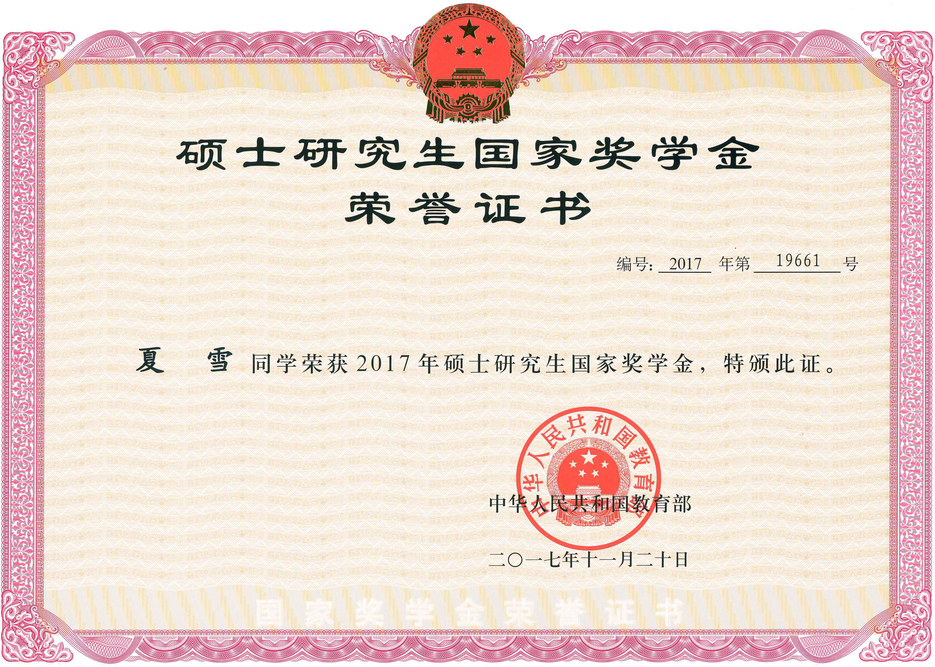 获国家奖学金2人次