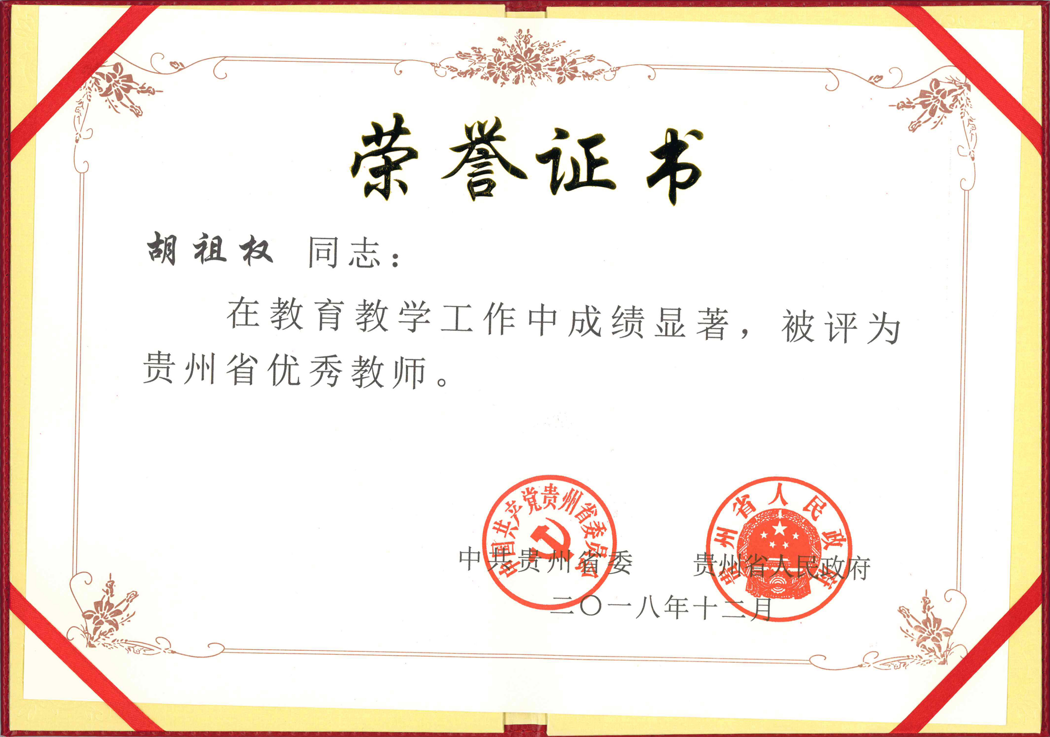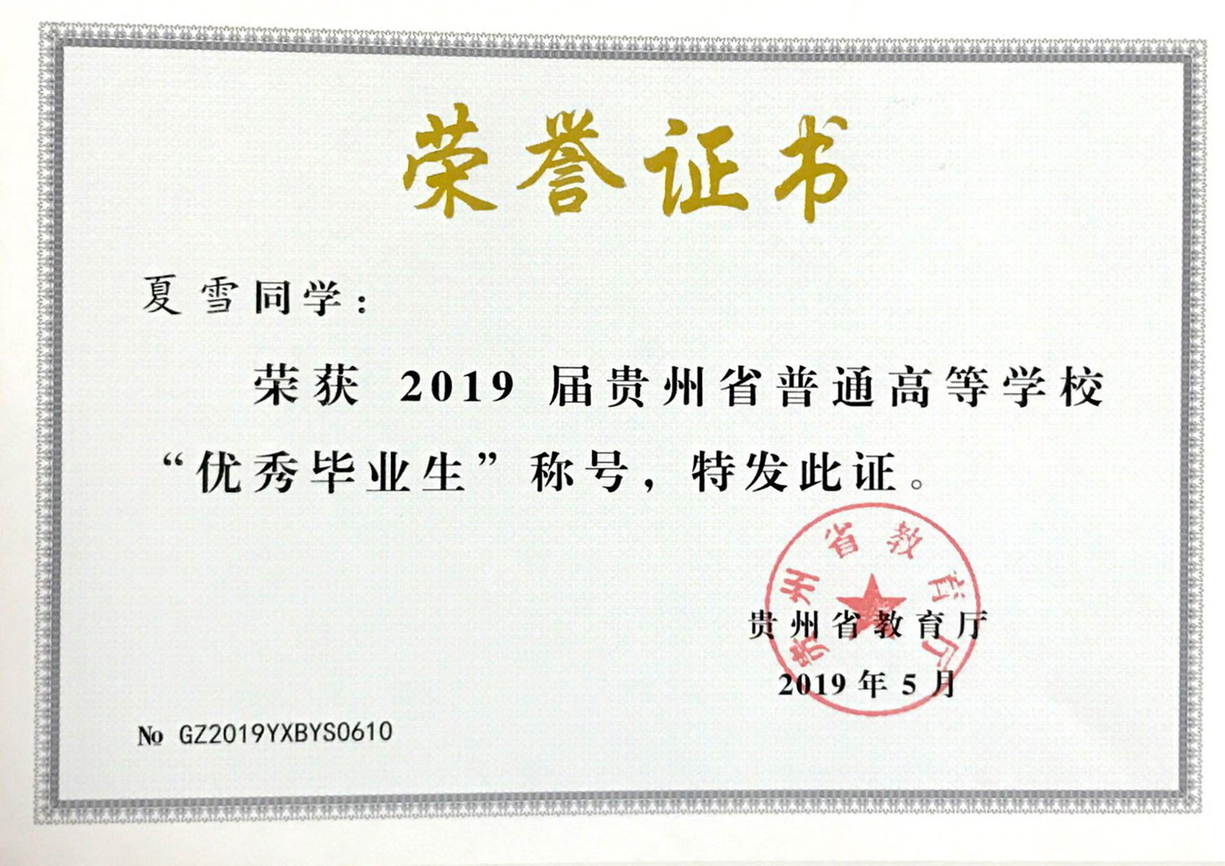 获贵州省优秀毕业生2人次